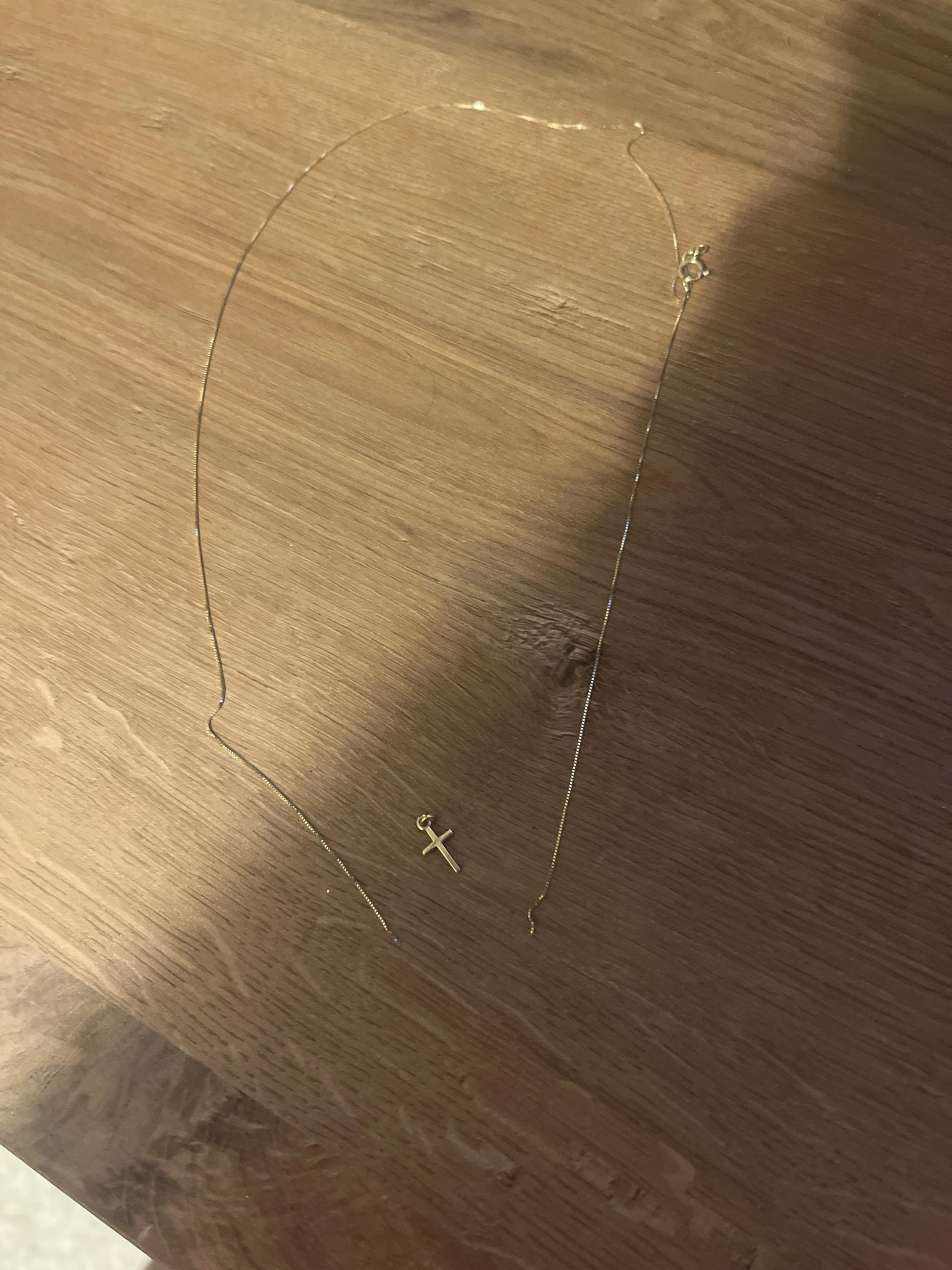 Beautiful cross necklace! The cross is small and dainty but big enough to stand out. It was a gift for my daughter and she loved it!