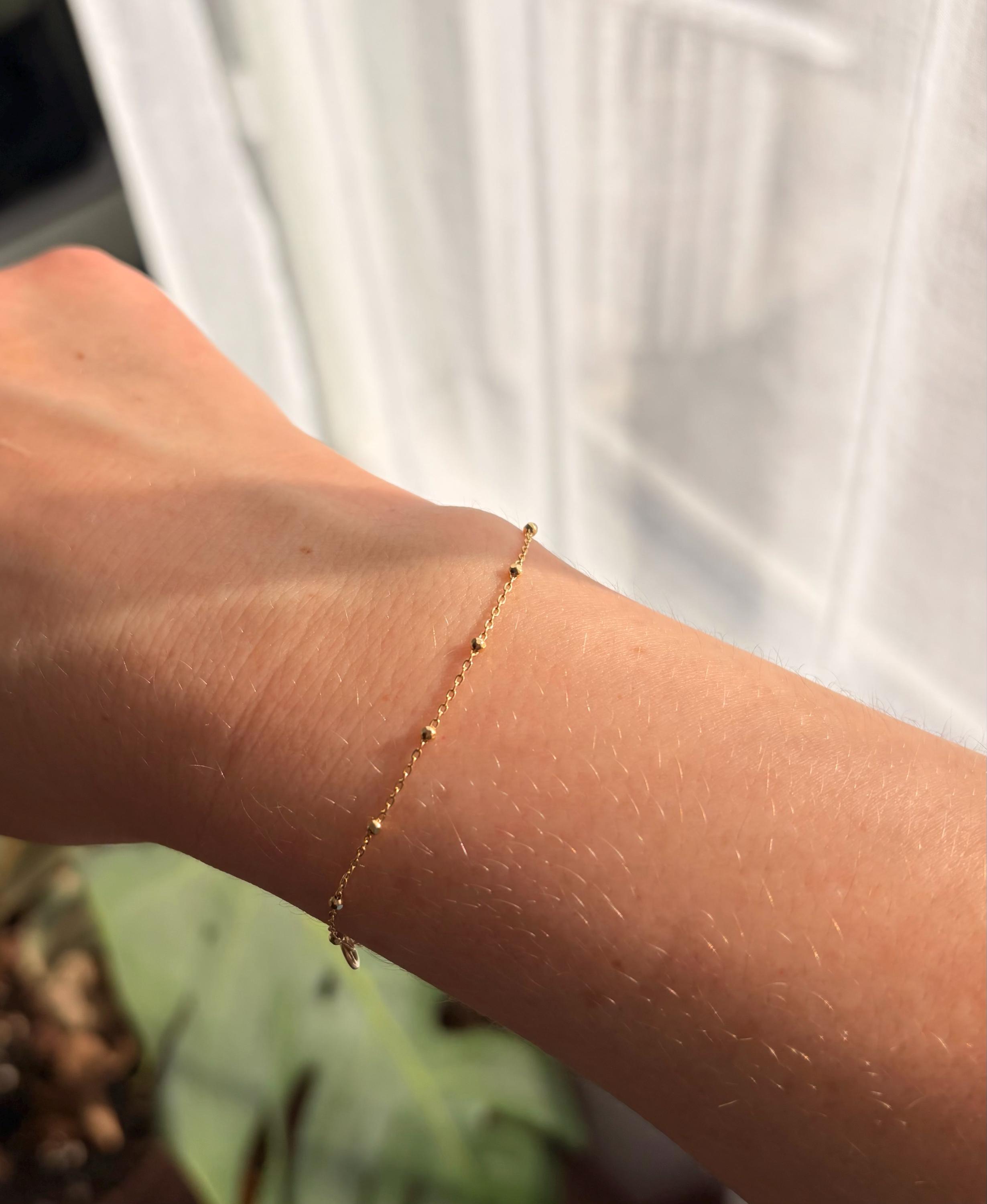 14K Gold Delicate Bracelet - 14K Gold Cable Chain with Beads Bracelet - 14K Solid Gold Bracelet